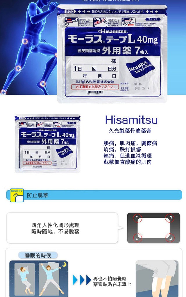 日本久光製藥鎮痛消炎貼40mg (7枚)